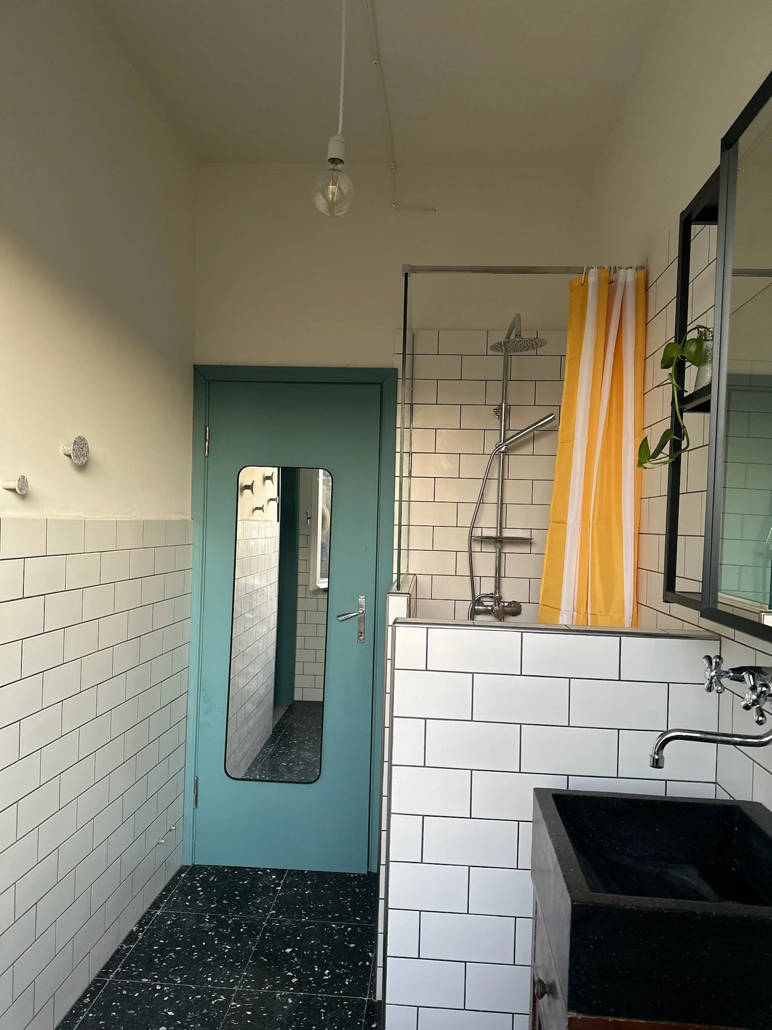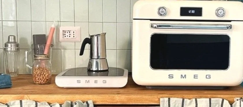 Features Renata’s original porcelain sink, now paired with upgraded SMEG appliances.